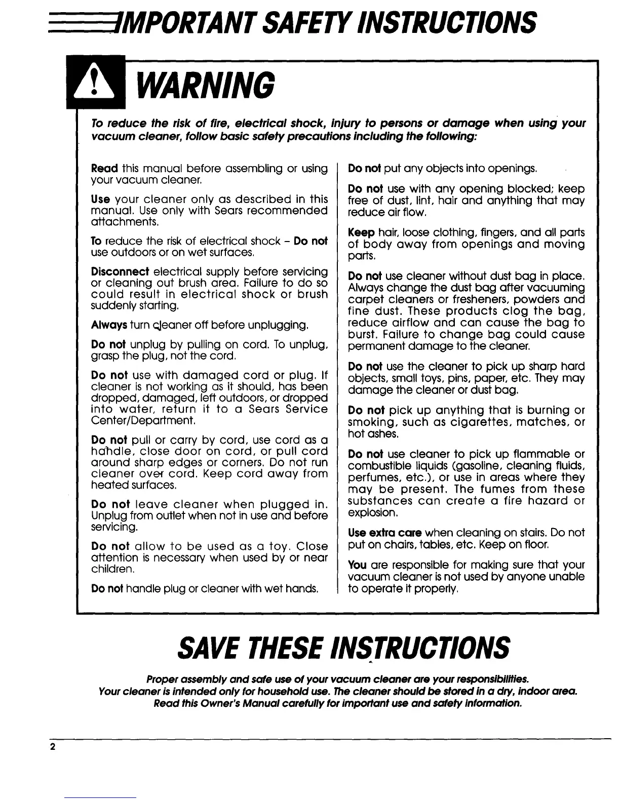 Proper assembly and sate use of your vacuum cleaner are your responsibilities.