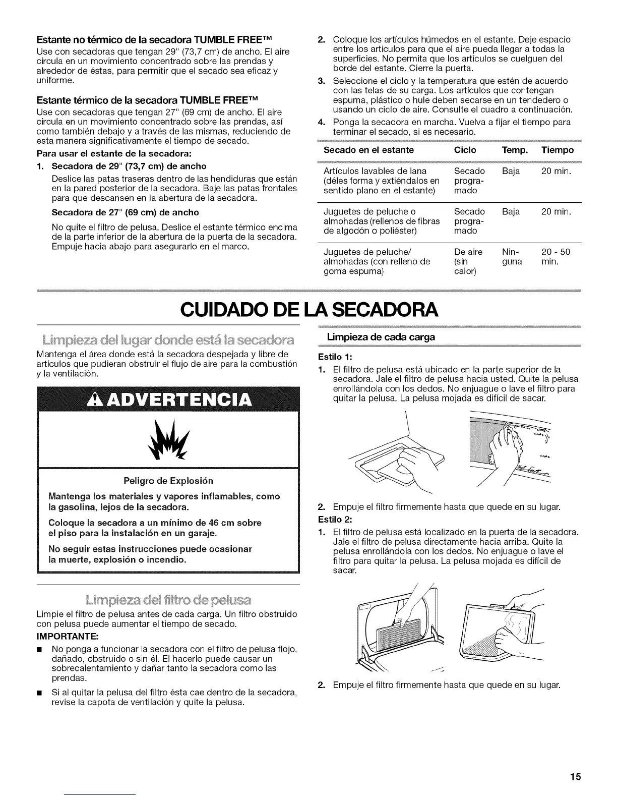 • Sial quitar la pelusa del filtro esta cae dentro de la secadora,