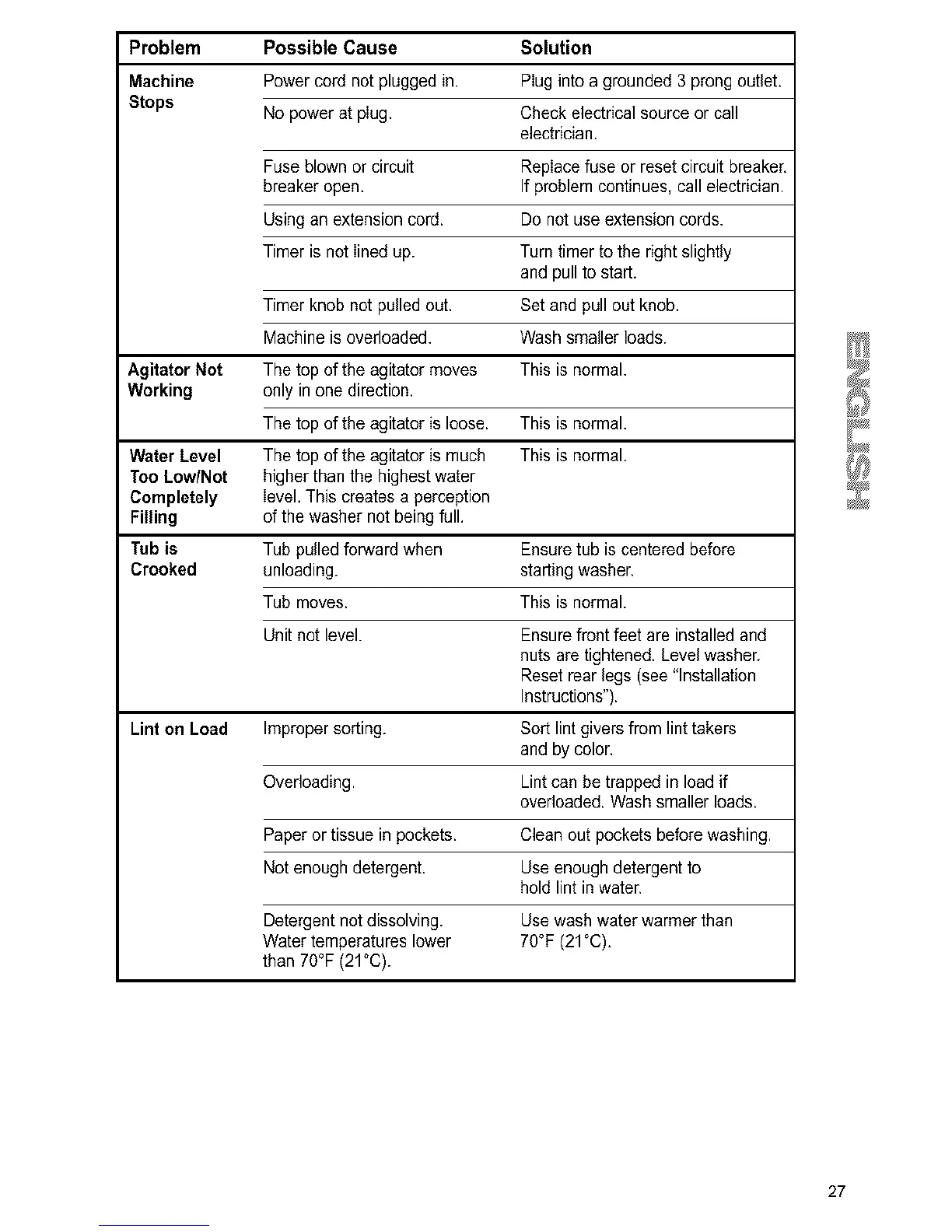 Machine Power cord not plugged in. Plug into a grounded 3 prong outlet.