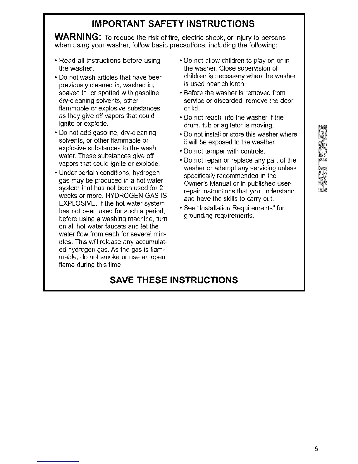 WARNING: To reduce the risk of fire, electric shock, or injury to persons
