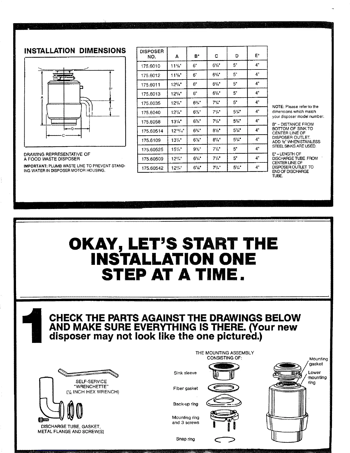 CHECK THE PARTS AGAINST THE DRAWINGS BELOW
