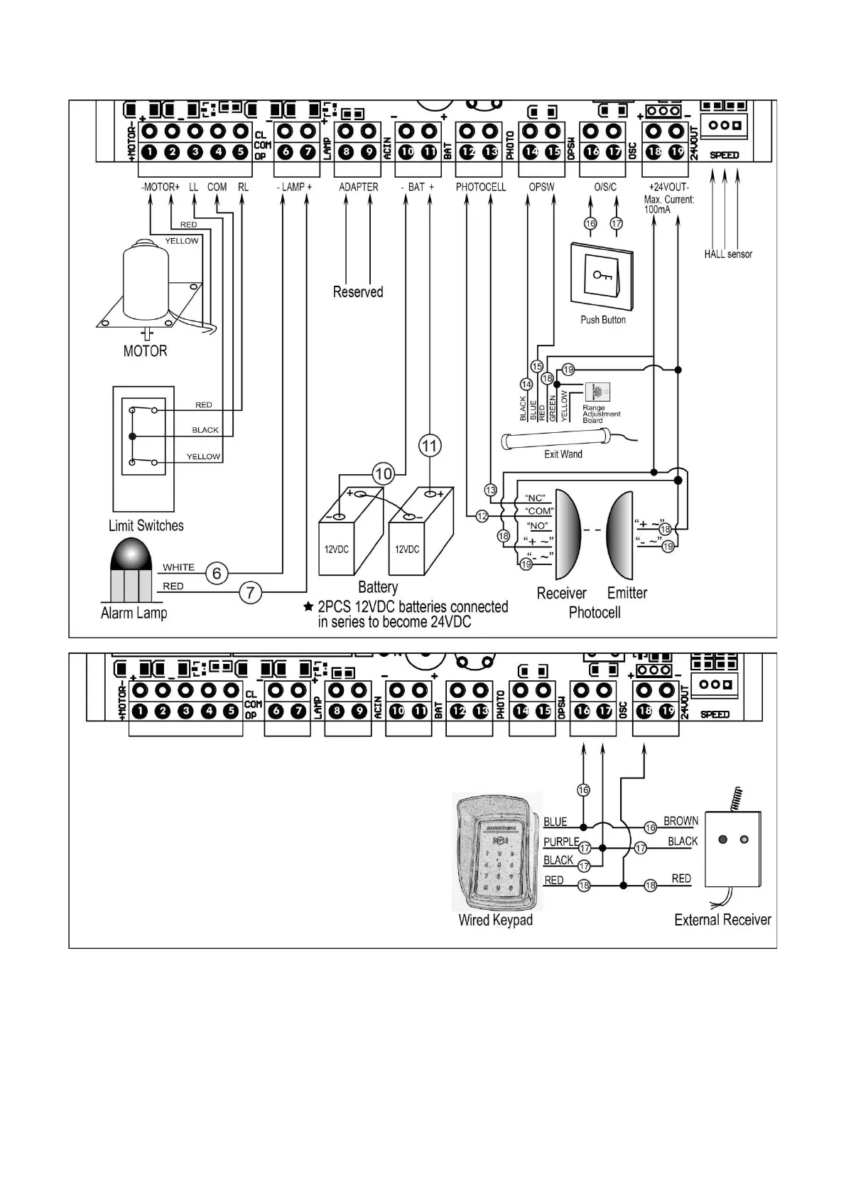 The BLACK wire of the exit wand should be connected to the 14” terminal.