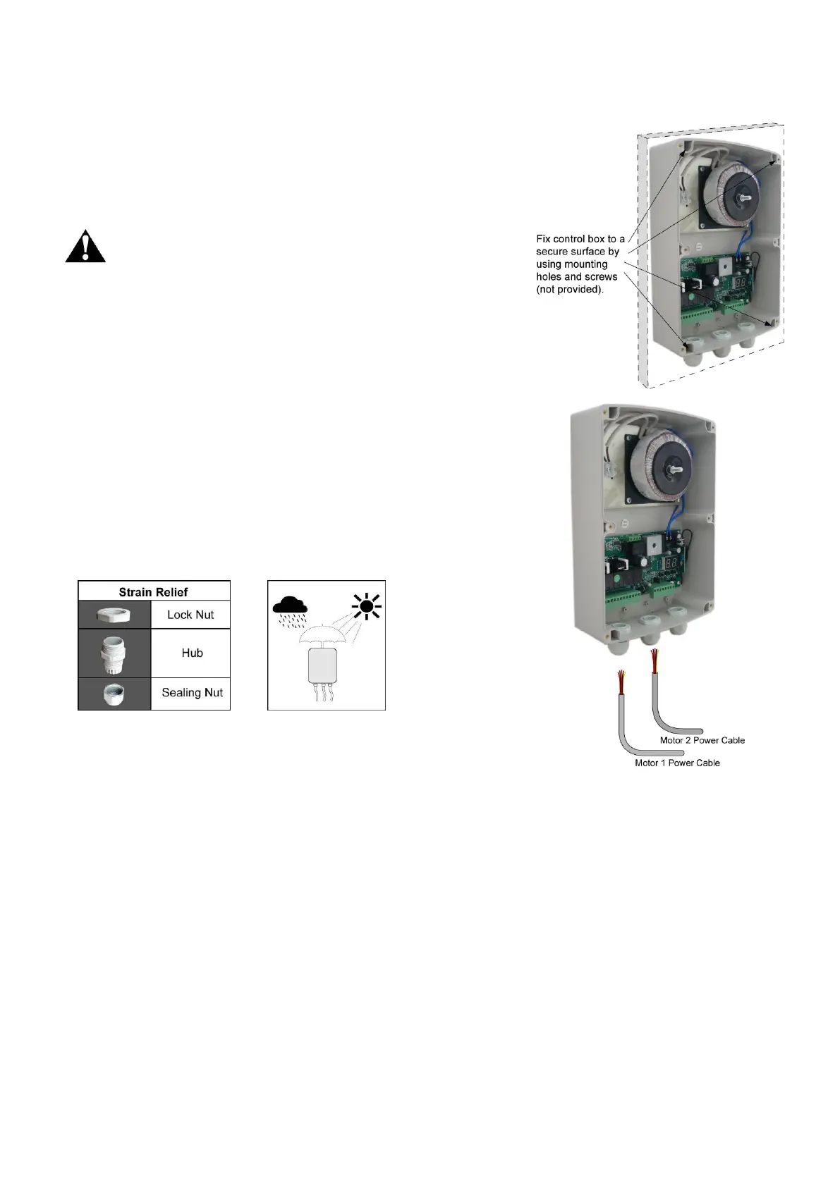 CAUTION: Install the Control Box in a well ventilated place protected against rain and sunlight.