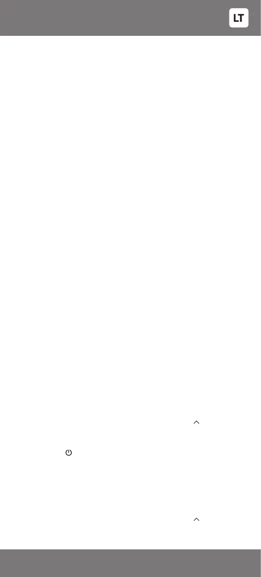 įsižiebs šviesos indikatorius. Atleiskite abu mygtukus.