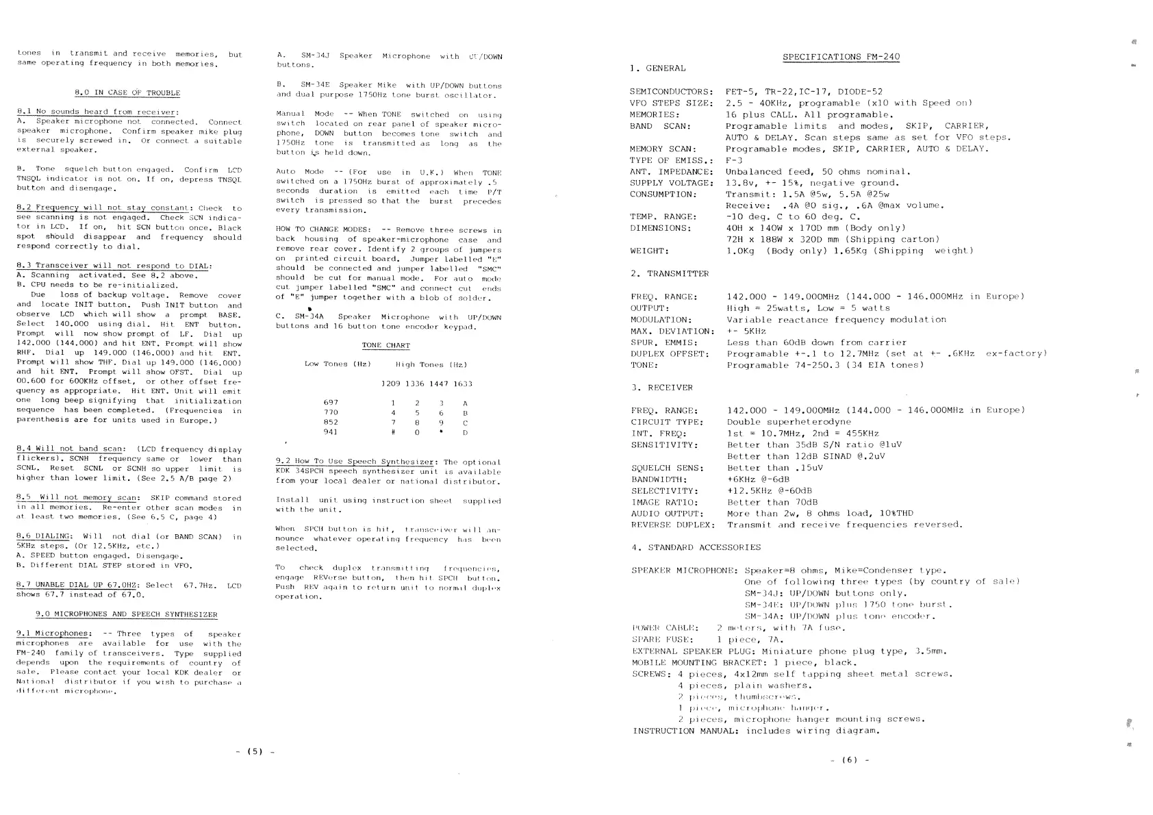 Kenpro FM-240 - How to Use Tone Squelch; Activating Tone Squelch; Setting Tone Frequencies; In Case of Trouble
