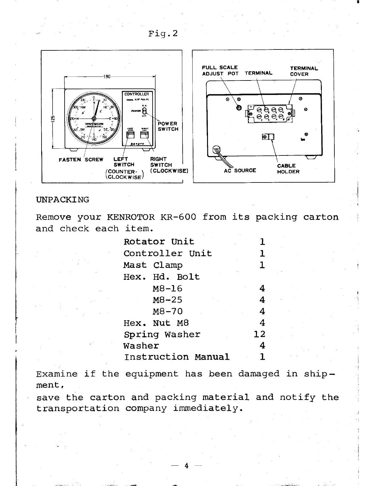 Kenpro KR-600RC - Setup and Interconnection; Unpacking
