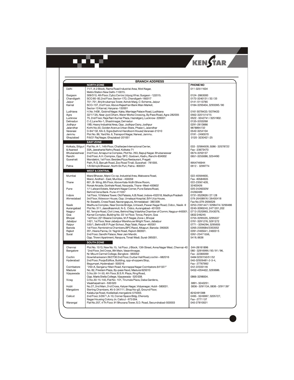 Kenstar KJ20SSL2 - Branch Office Locations