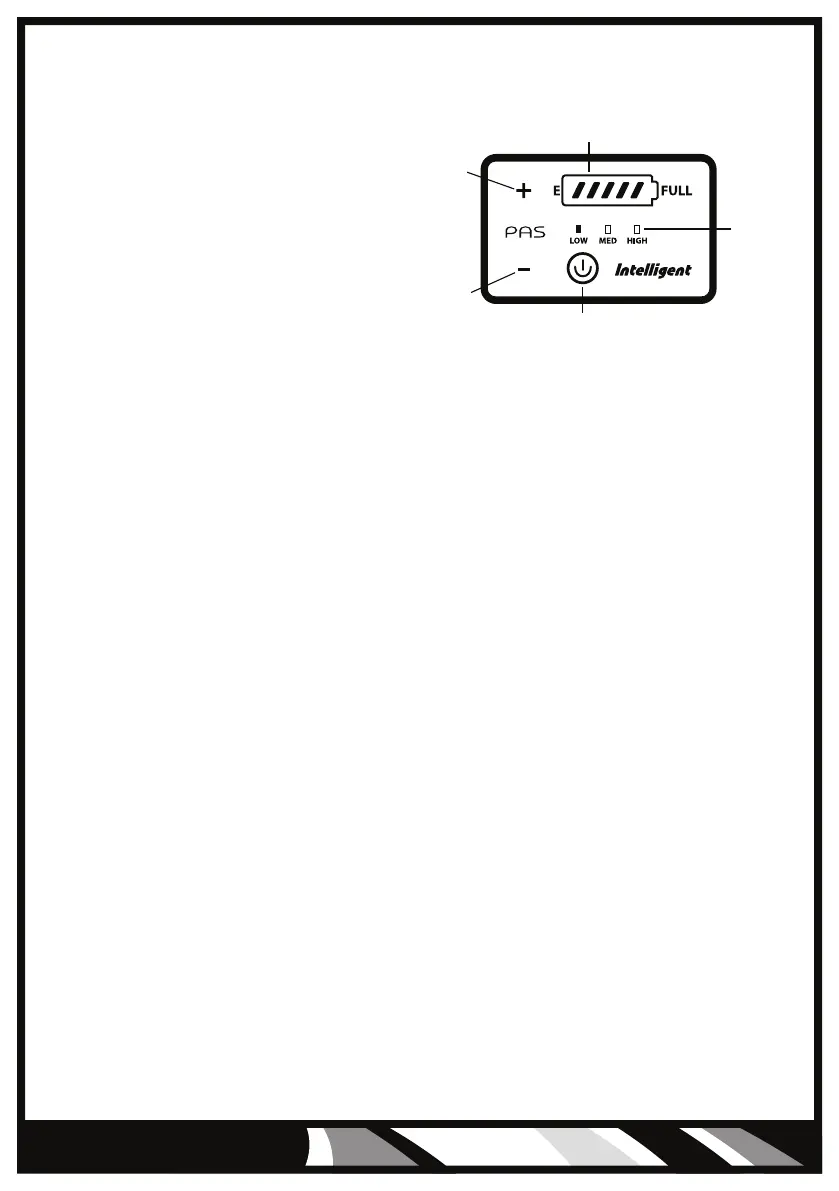 • Choosing motor assistance level from LOW to HIGH