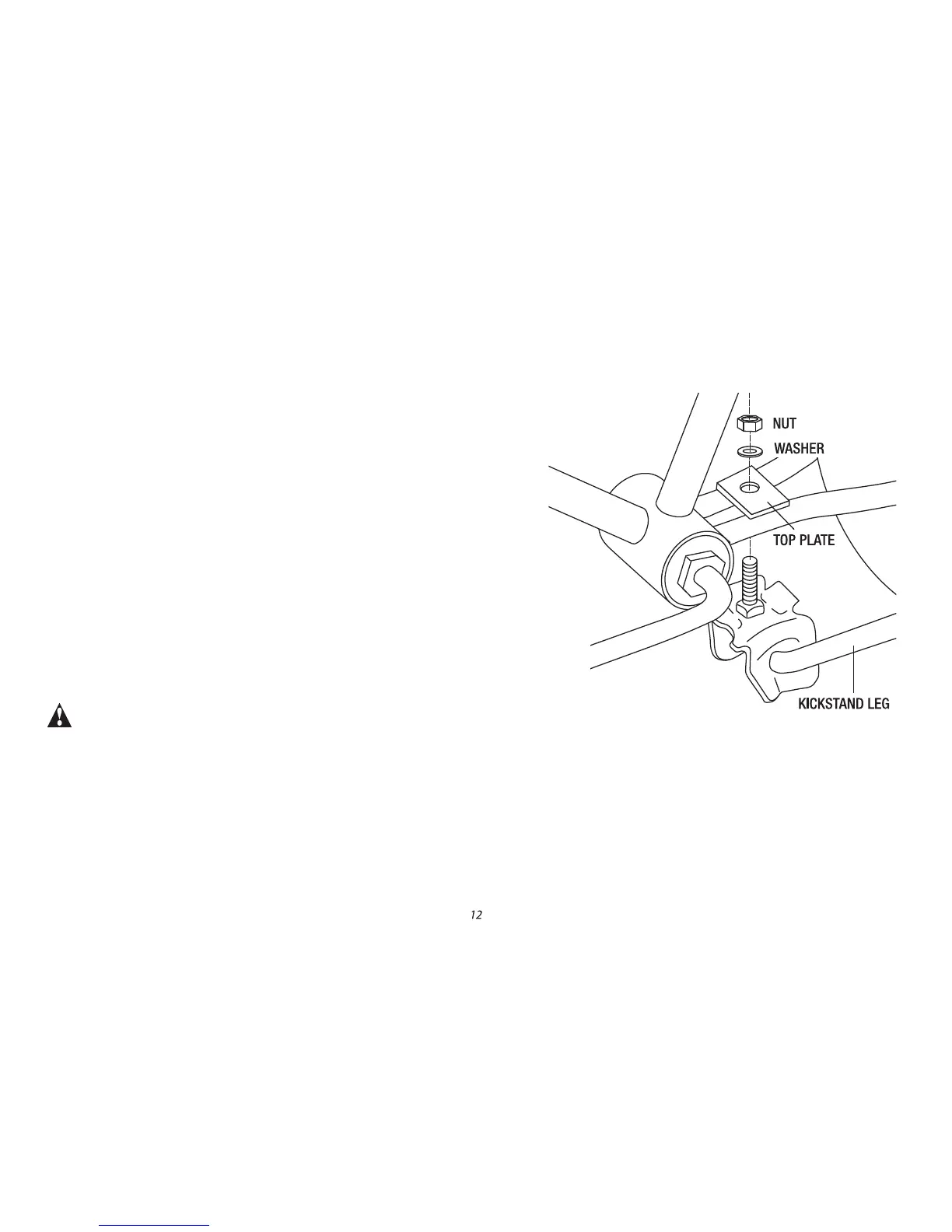 5. Replace the washer and nut onto the mounting bolt. Hold the kickstand