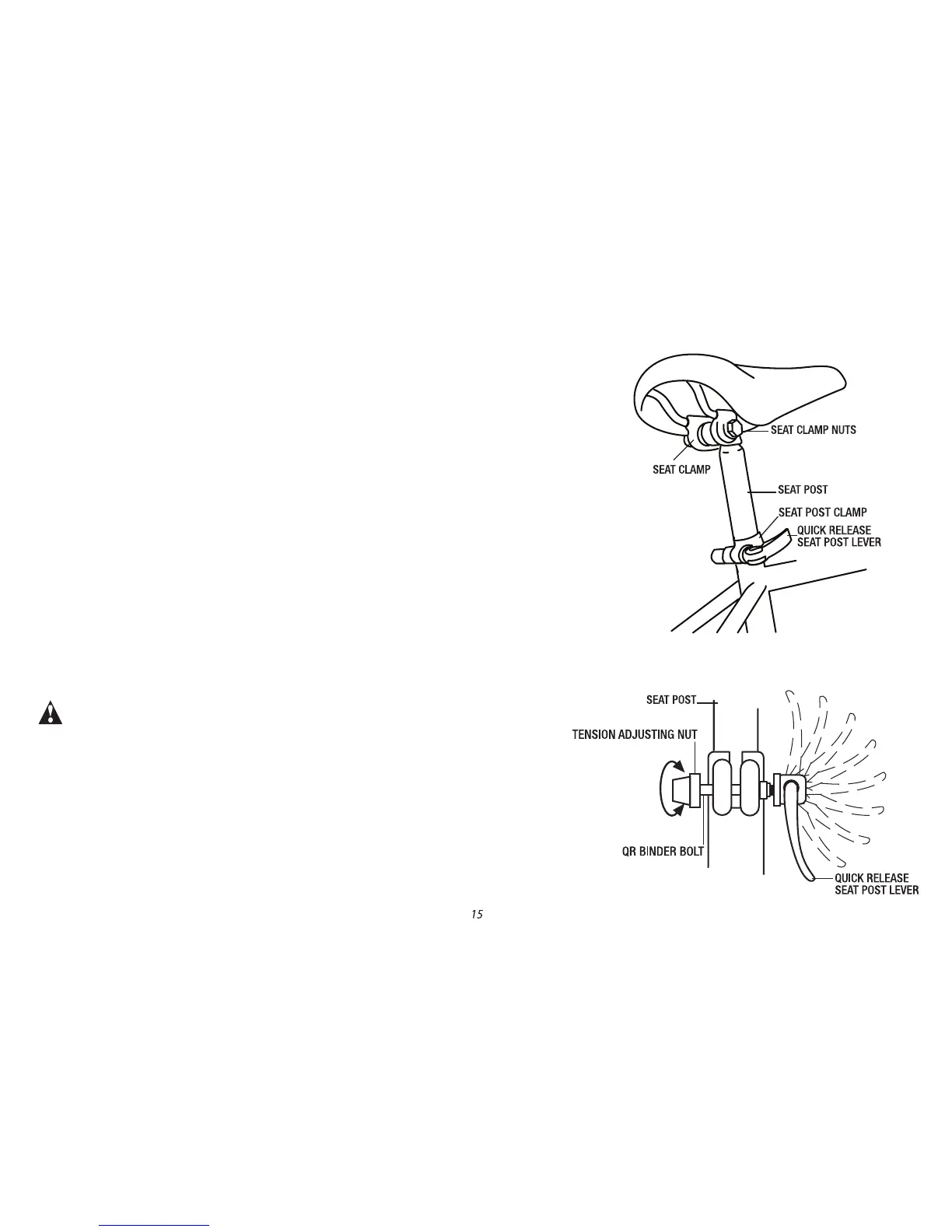 ALWAYS CHECK TO MAKE SURE SEAT POST ADJUSTING MECHANISM IS