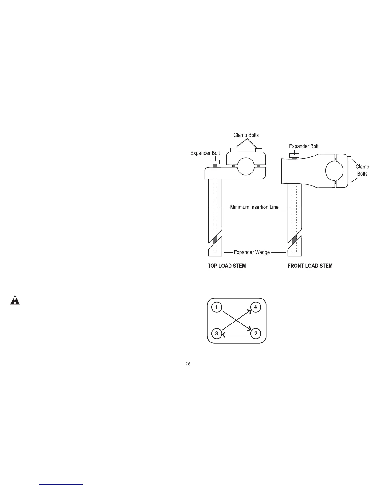 DANGER OF DAMAGING THE HANDLEBAR STEM ASSEMBLY