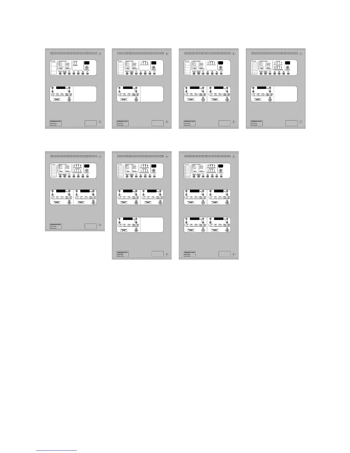 The fascias are divided into sections for the detection panel and extinguishant modules. A standard EN54-2 control