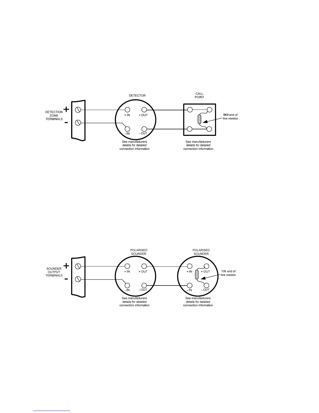 The wiring is monitored for open and short circuit fault conditions by removing the 6K8 0.5W end of line