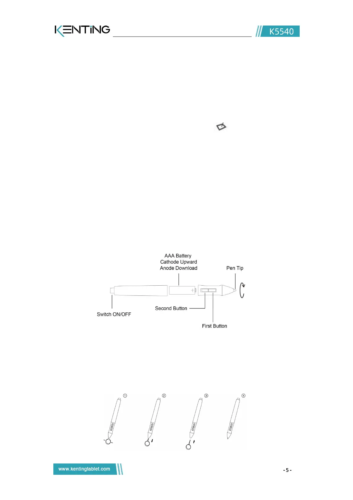 2) Insert a new pen nib into the stylus and push the nib until it stops. (③④)