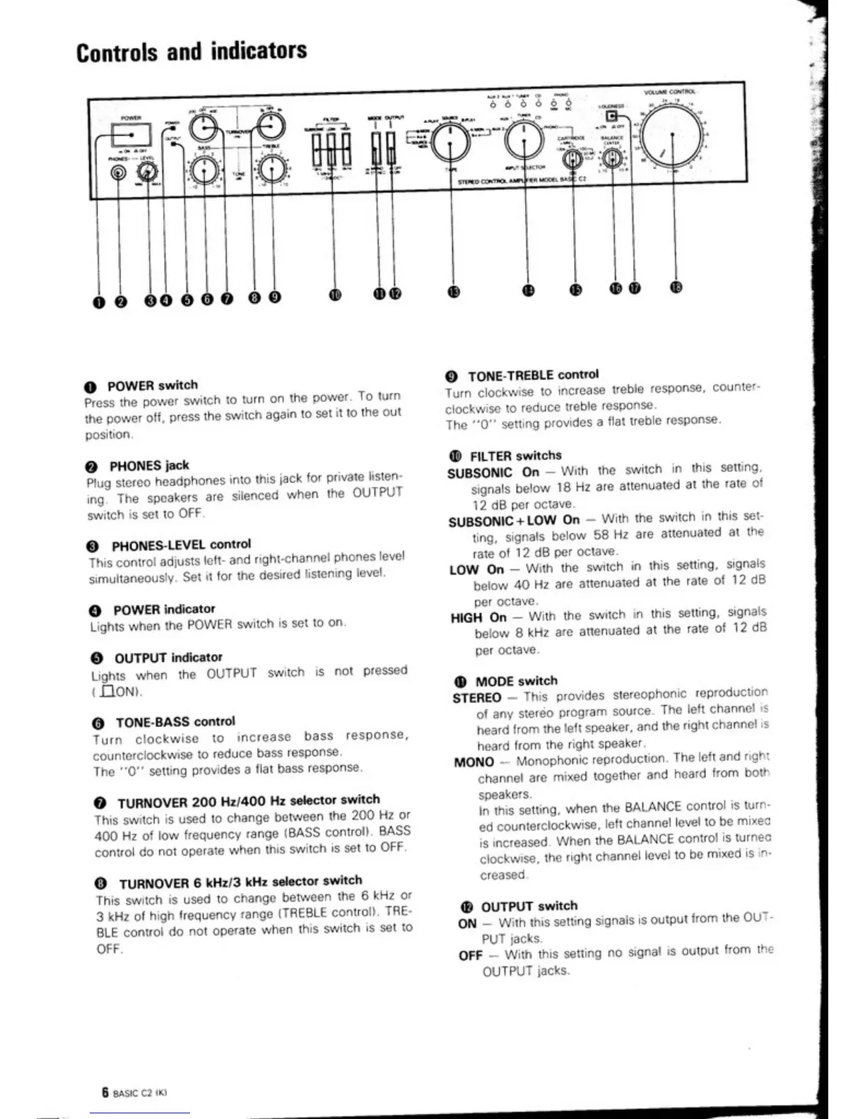 Kenwood Basic C2 - Front Panel Controls - Part 1; Power and Headphone Controls; Bass, Treble, and Turnover Controls; Filter and Mode Selection