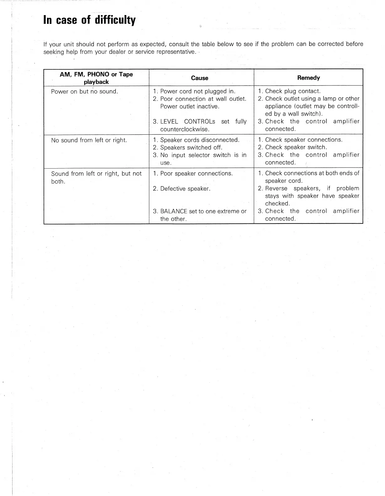 Kenwood Basic M1D - Troubleshooting; Resolving No Sound Issues; Addressing Sound Imbalance