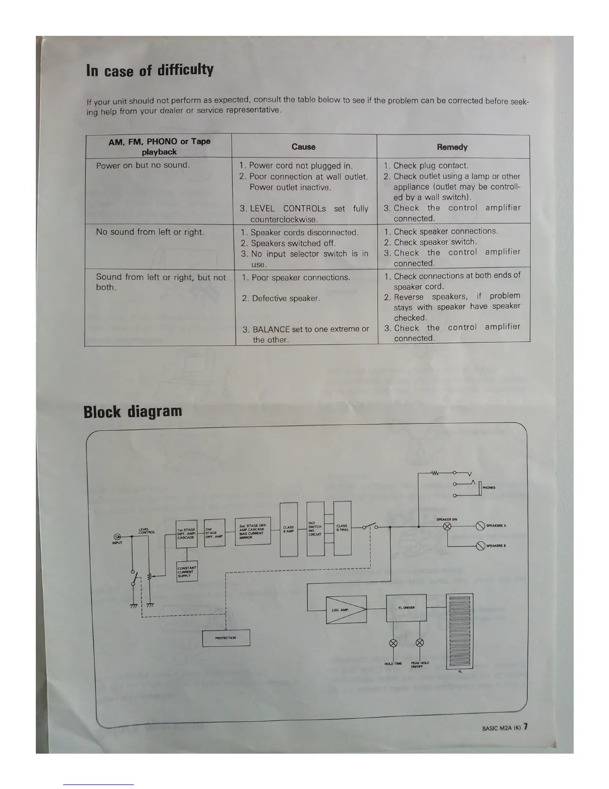 Kenwood Basic M2A - Troubleshooting and System Diagram; Troubleshooting Common Issues; Internal Block Diagram