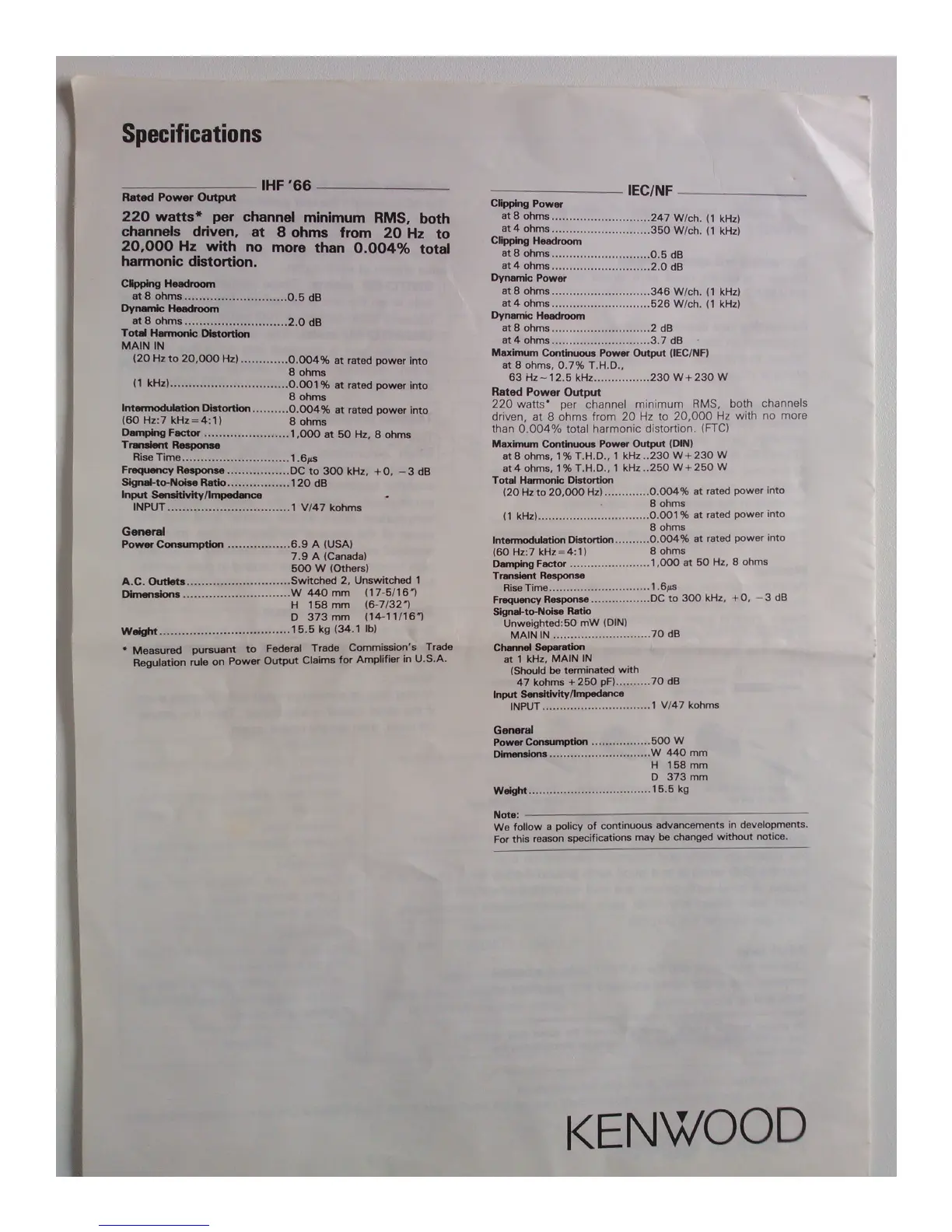 Kenwood Basic M2A - Technical Specifications; Performance Metrics; General Unit Details