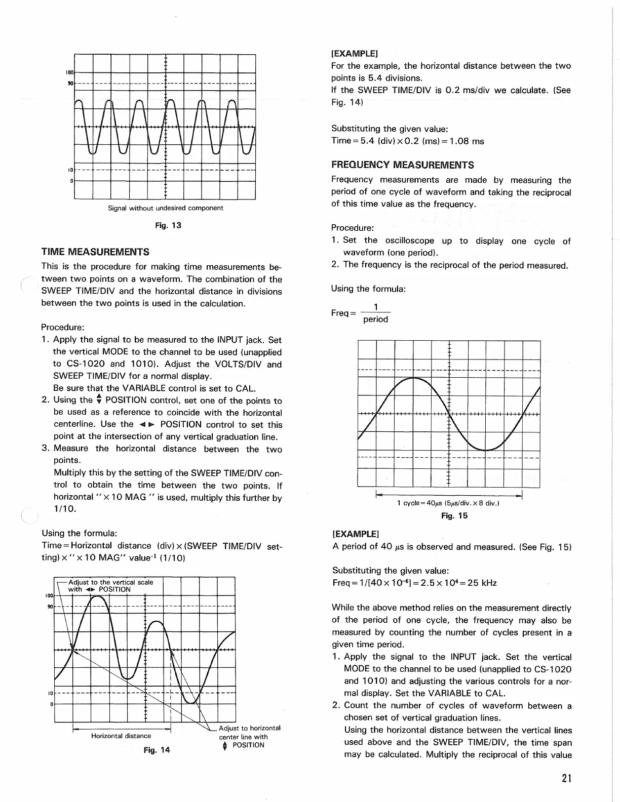 Time = Horizontal distance (div)x (SWEEP TIME/DIV set-