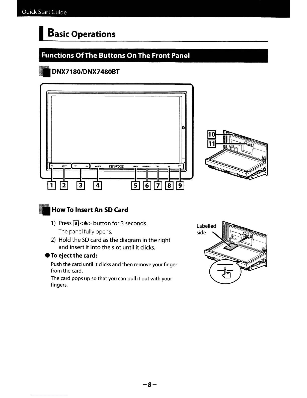 Kenwood DNX6180 - Basic Operations; Functions Ofthe Buttons on the Front Panel