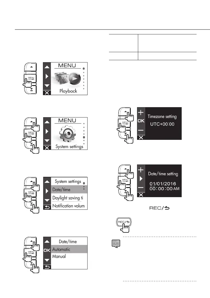 Manual Set the date and time manually.