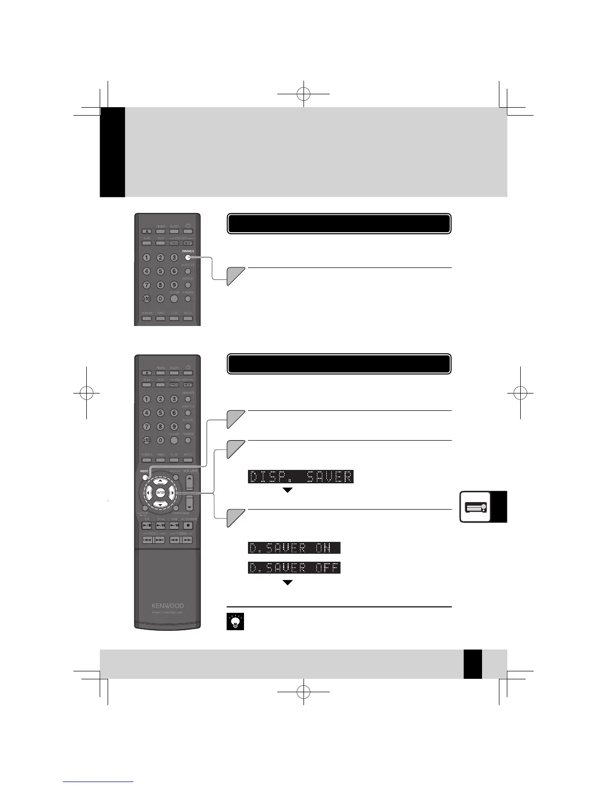 When you are playing from a CD or USB, the display saver is activated