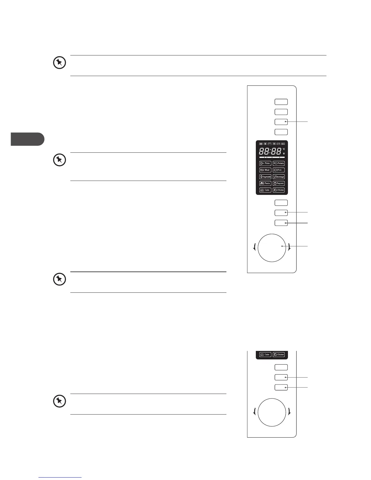 For Convection Cooking without preheating, please follow the steps below.