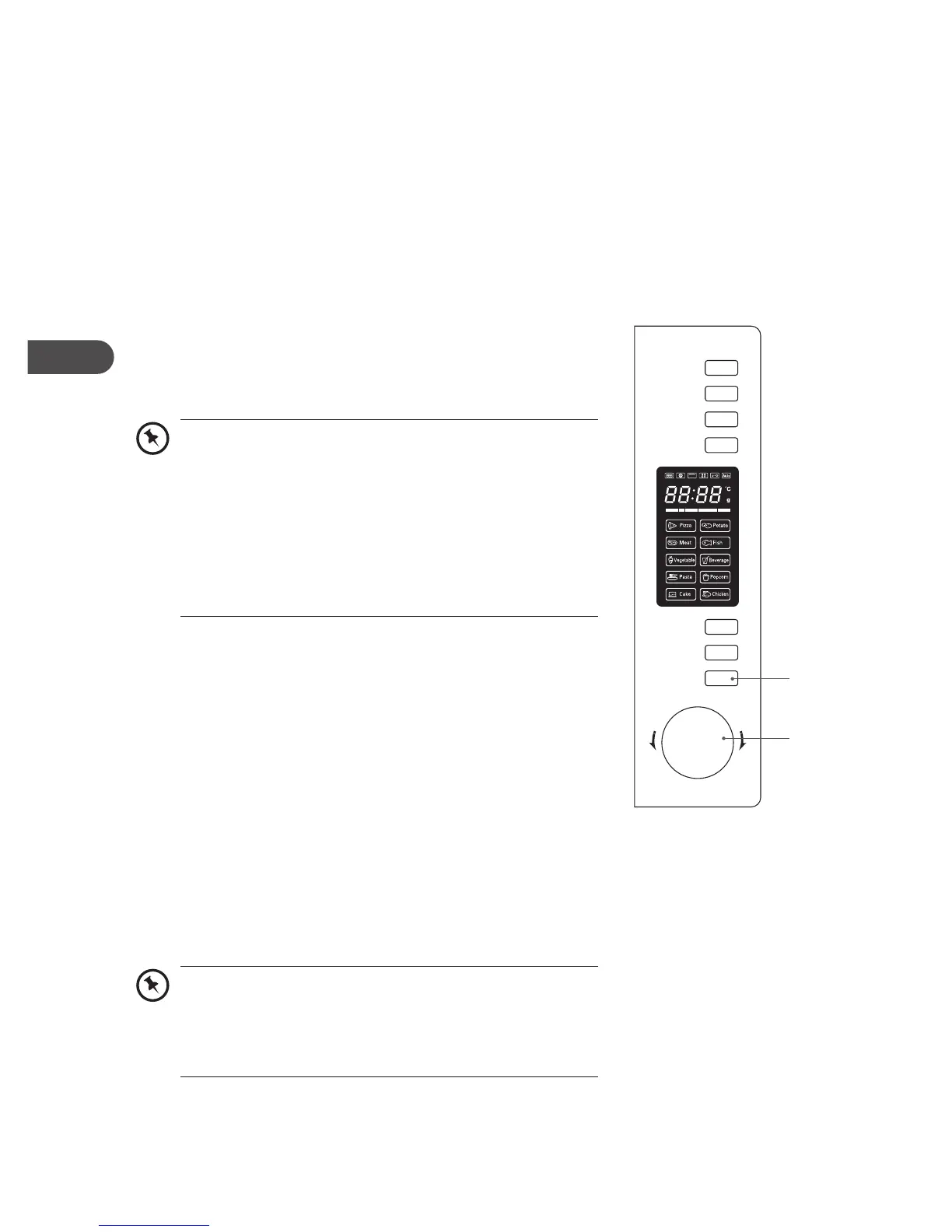4. Press the Start/+30Sec./Confirm button to start cooking.