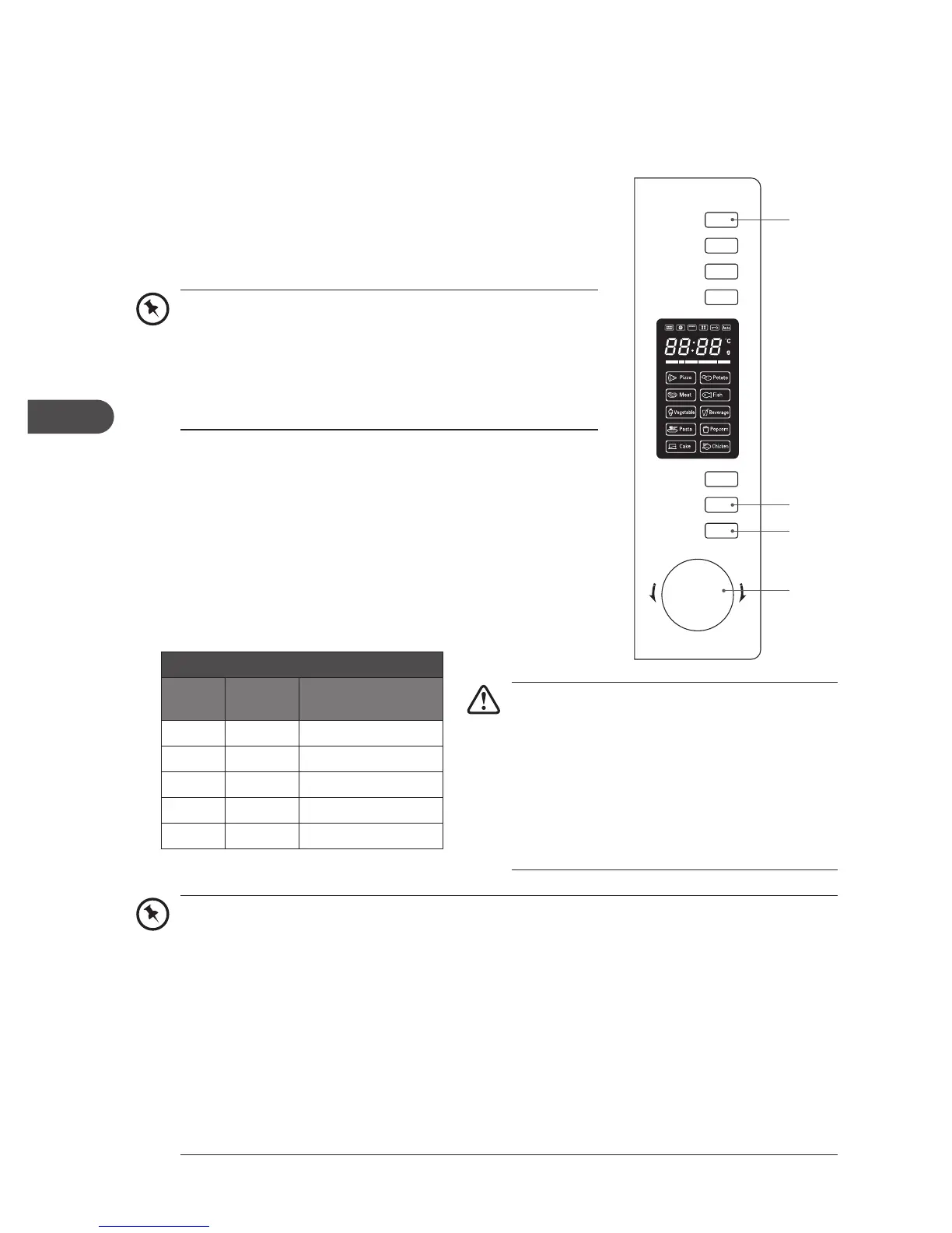 • Hvis du velger 0%, blir det ingen mikrobølgeeffekt. Denne innstillingen er kun for å fjerne