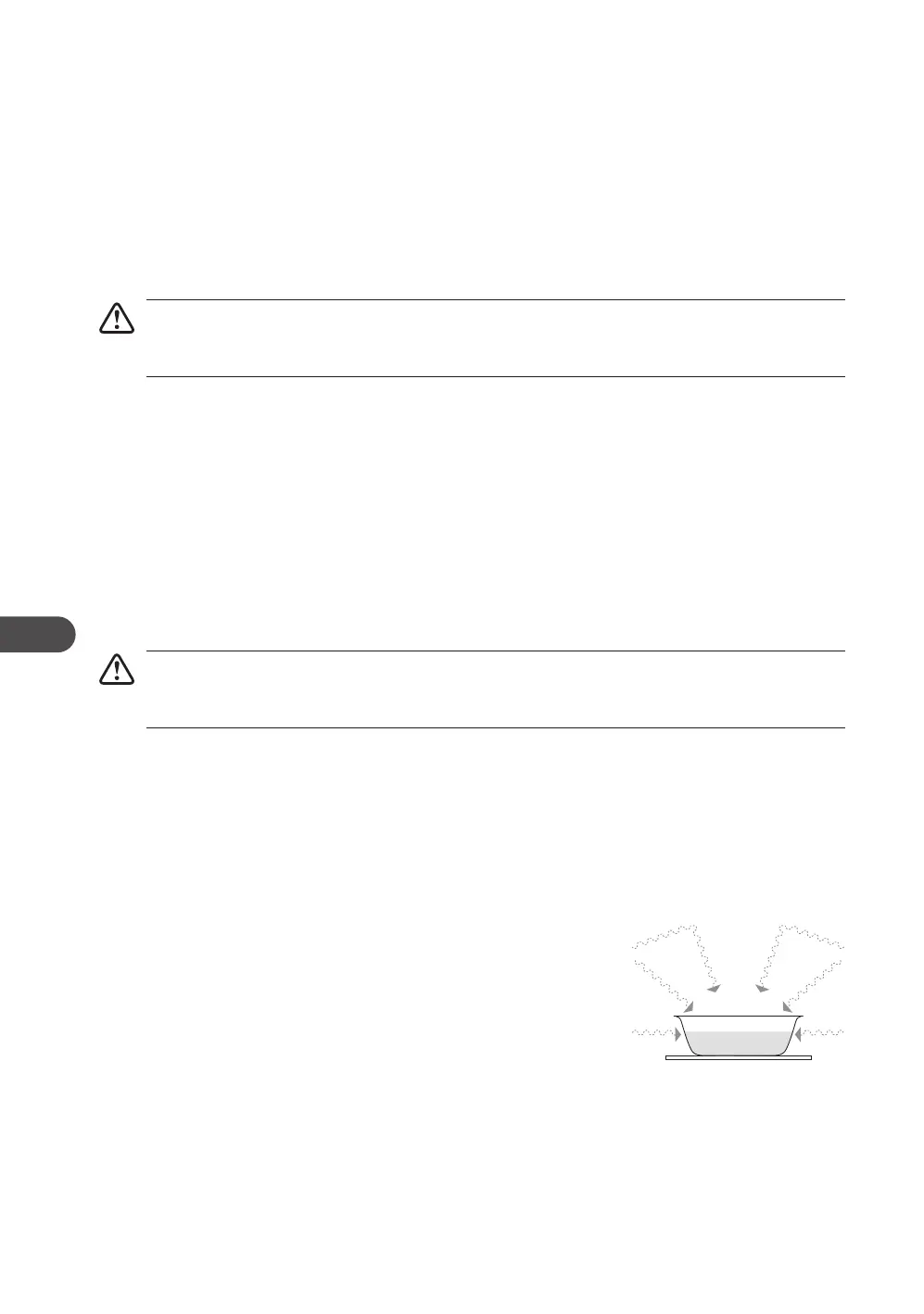 maden eller beholderen, så det ikke berører ovnens inderside, hvilket kan medføre gnister.