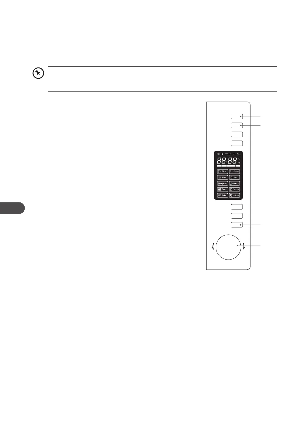 1. Tryk to gange på knappen Mikrobølge (1), for at sætte