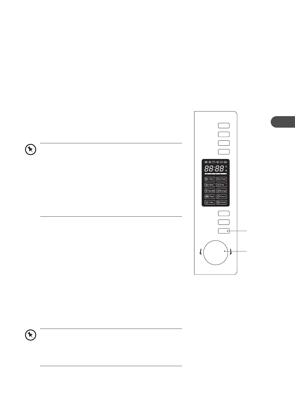 4. Press the Start/+30Sec./Confirm (1) button to start cooking.