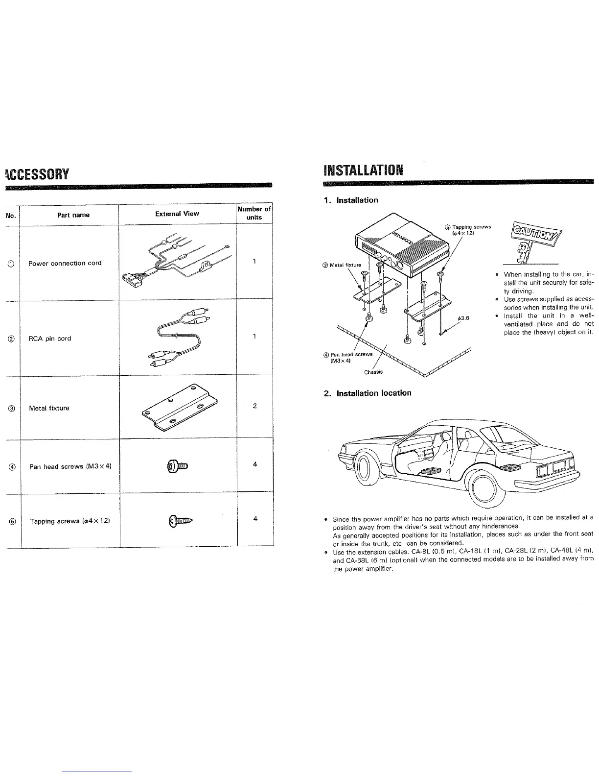 Kenwood KAC-521 - Accessories and Installation; Included Accessories; Installation Procedure