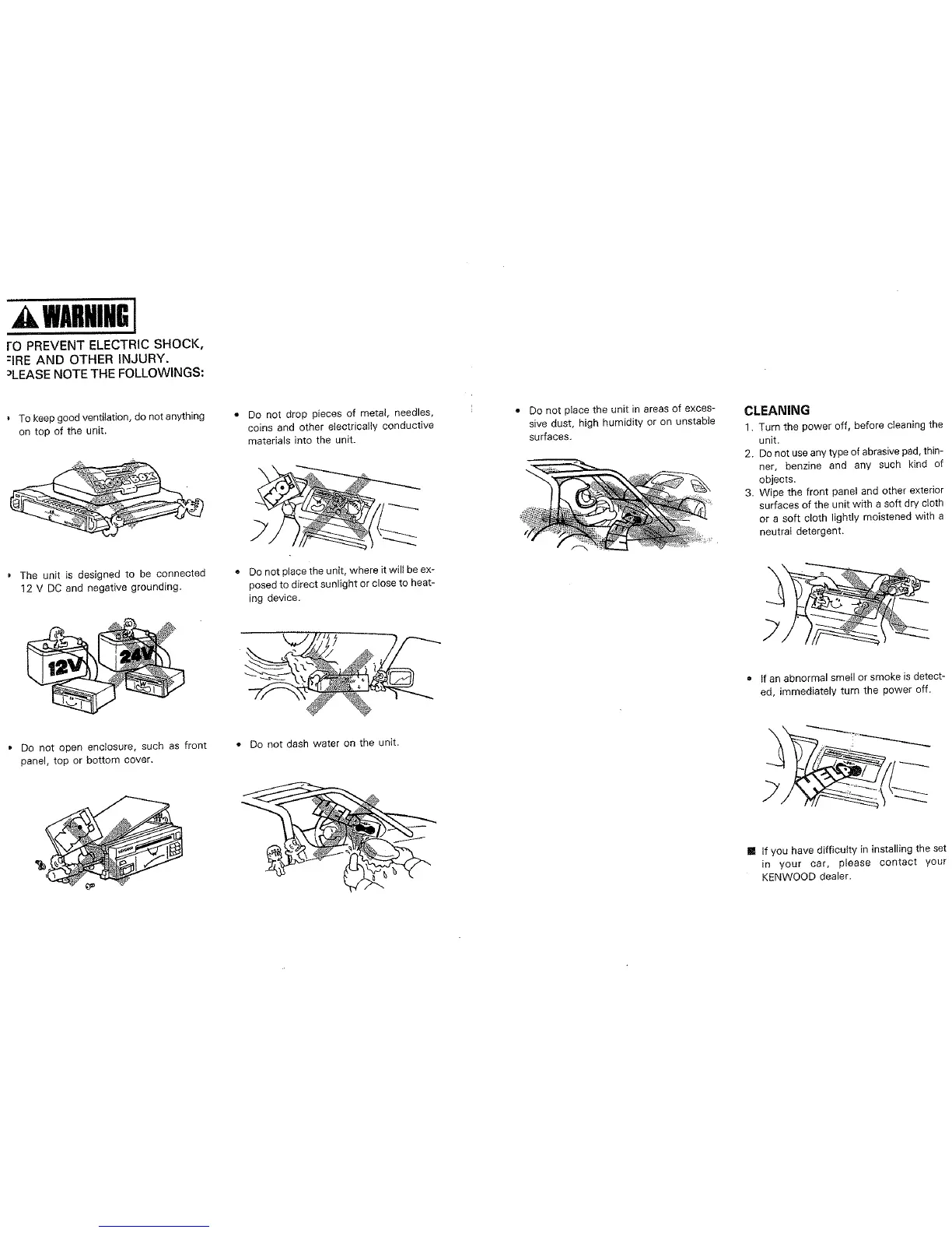 Kenwood KAC-521 - Safety Precautions and Cleaning; Electrical Safety and Usage Warnings; Unit Cleaning Instructions; Installation Assistance