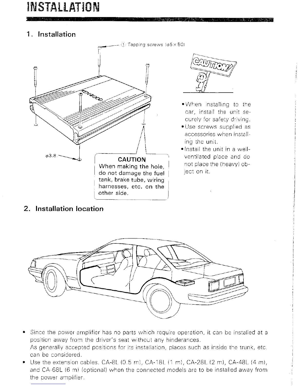 Kenwood KAC-821 - Installation; 1. Installation; 2. Installation Location