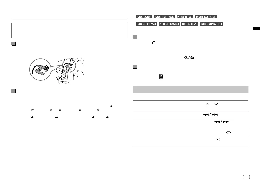 ”/“KDC-BT3 /BT2 ”/“KDC-MP3 ”/“KMR-D3 ”) sur le