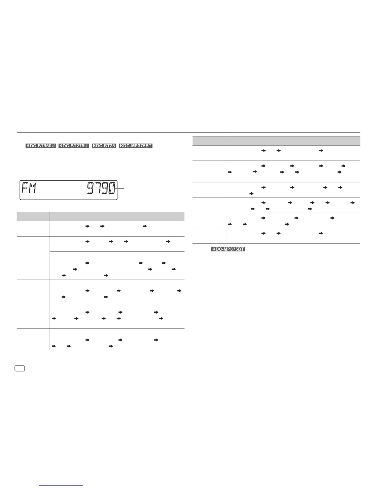 iPod USB/iPod BT When [MODE OFF] is selected (page 9):