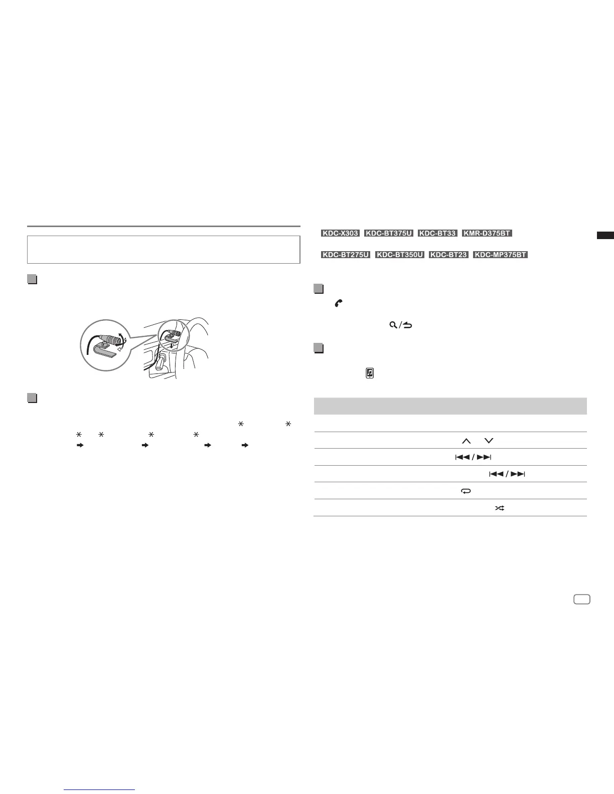 /BT2 ”/“KDC-MP3 ”/“KMR-D3 ”) on the Bluetooth device.