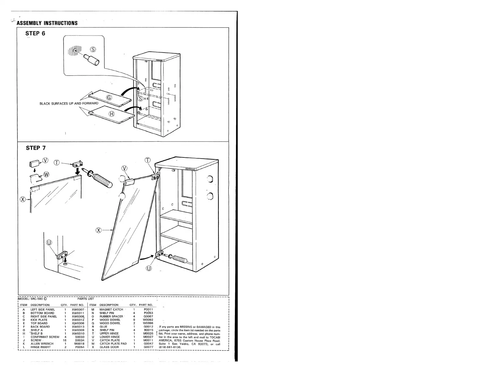 Kenwood SRC-590 - Step 6: Hardware and Shelf Pins; Step 7: Door and Catch Plate Mounting
