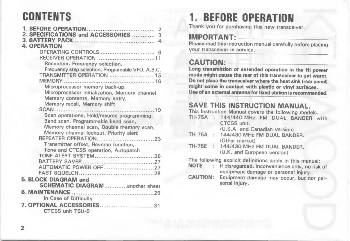 Kenwood TH-75E - BEFORE OPERATION