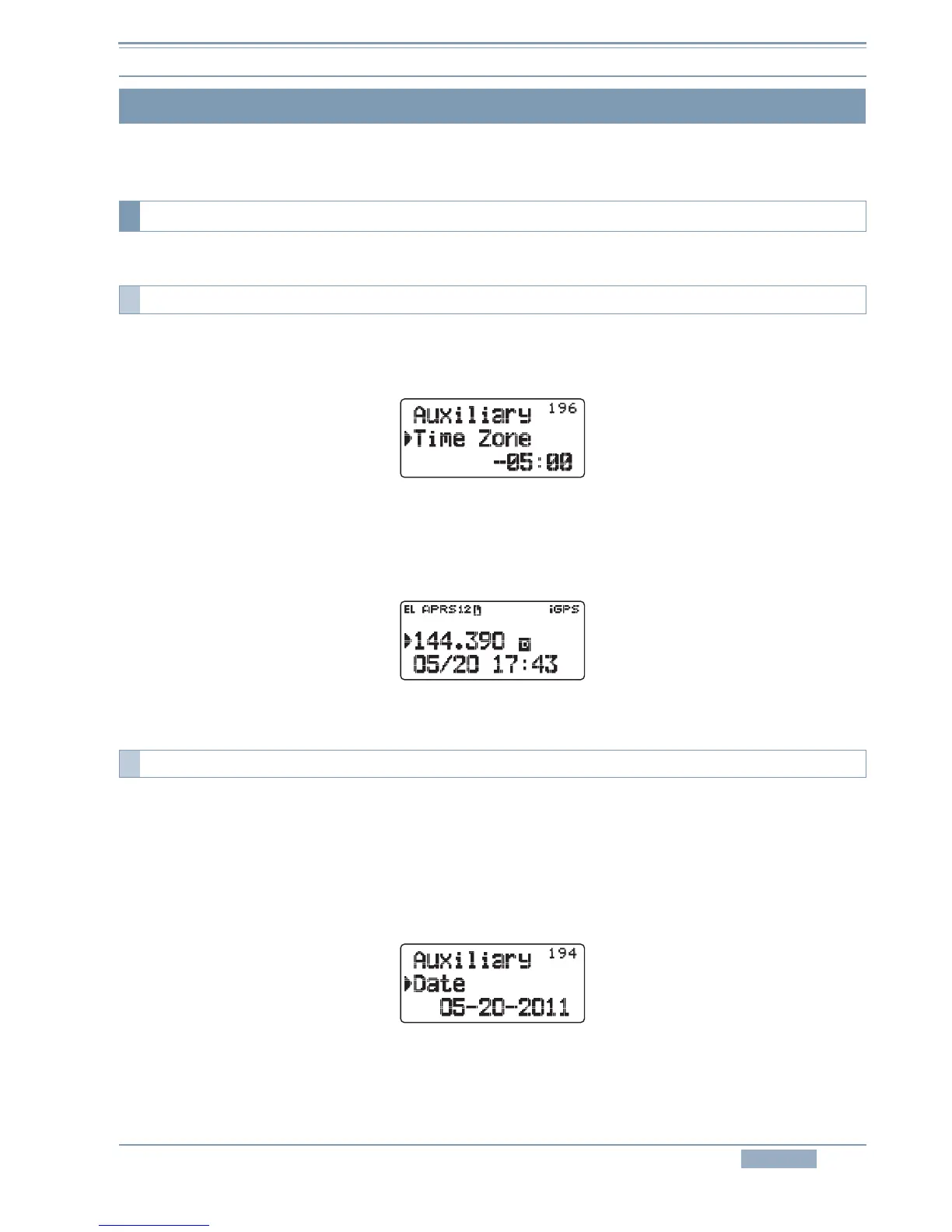 To enter the time in your local zone, select Menu 196 (Auxiliary-Time Zone).