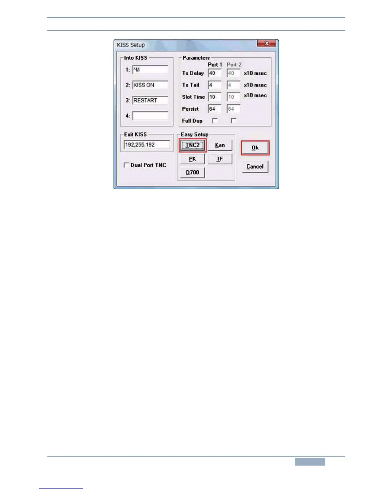 Figure 5-4 KISS Setup Window