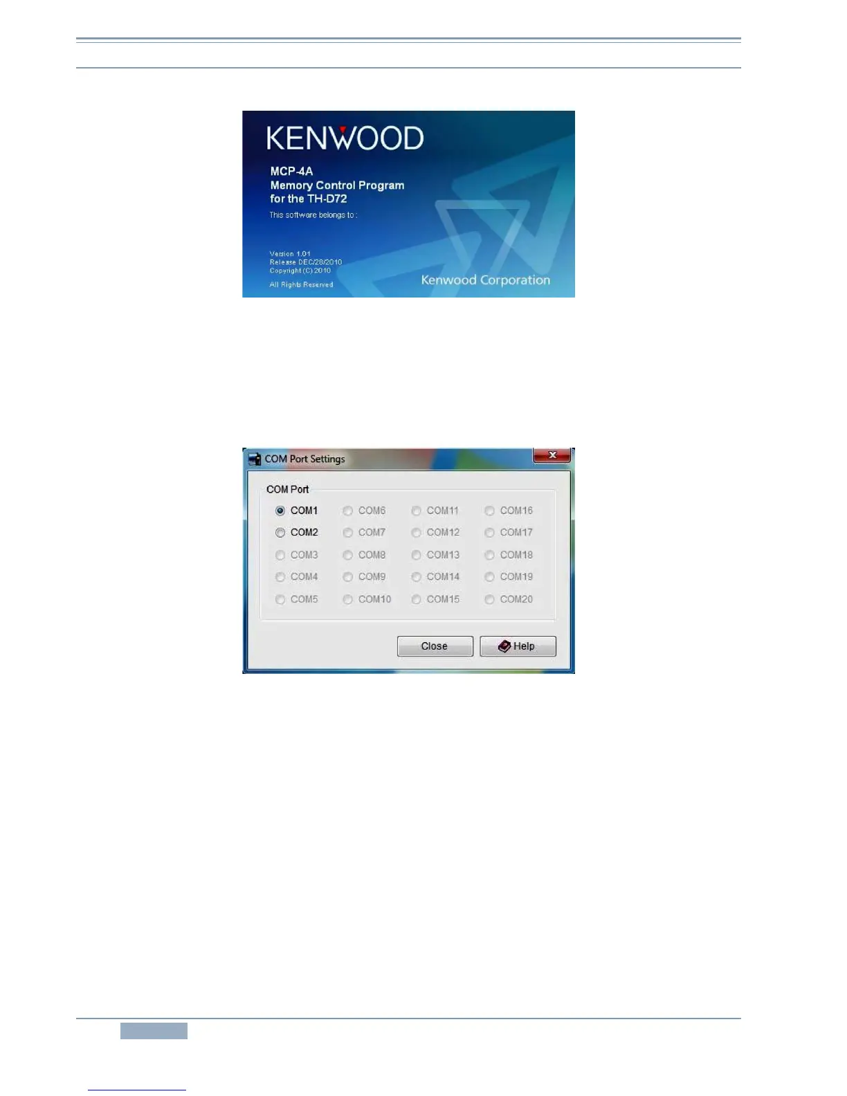 4. Click “Start” > “Program” > “KENWOOD” > “MCP-4A” to start MCP-4A.