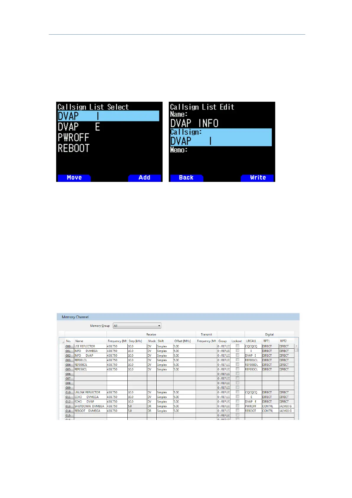 "Memory Channel" to add a frequency for the node device for reflector connection.