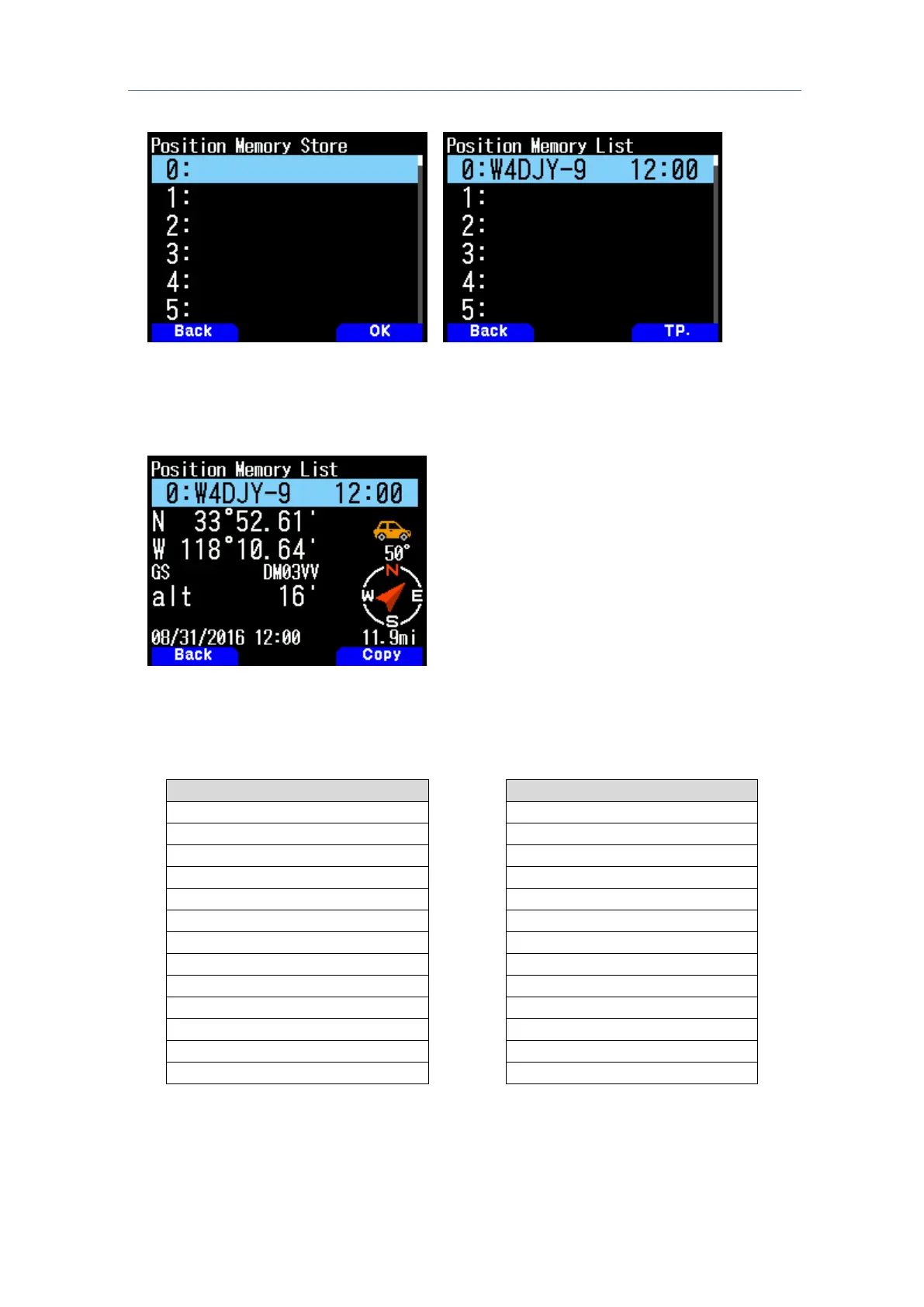 Press [MENU] key to display the list menu (and select Copy to Pos. Memory)
