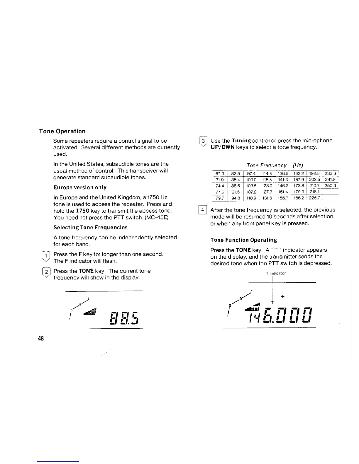 Kenwood TM-742A/E - Tone Operation; Tone Frequency Selection; Tone Function Operating