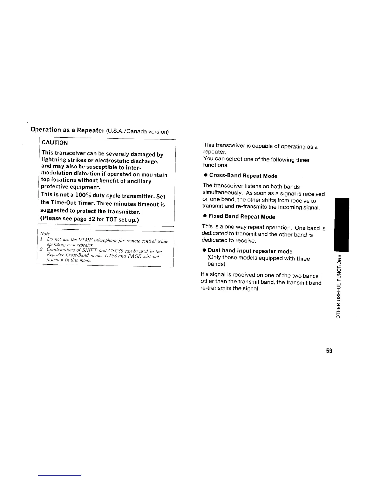 Kenwood TM-742A/E - Operation as a Repeater (U.S.A.;Canada version); Repeater Operation Modes
