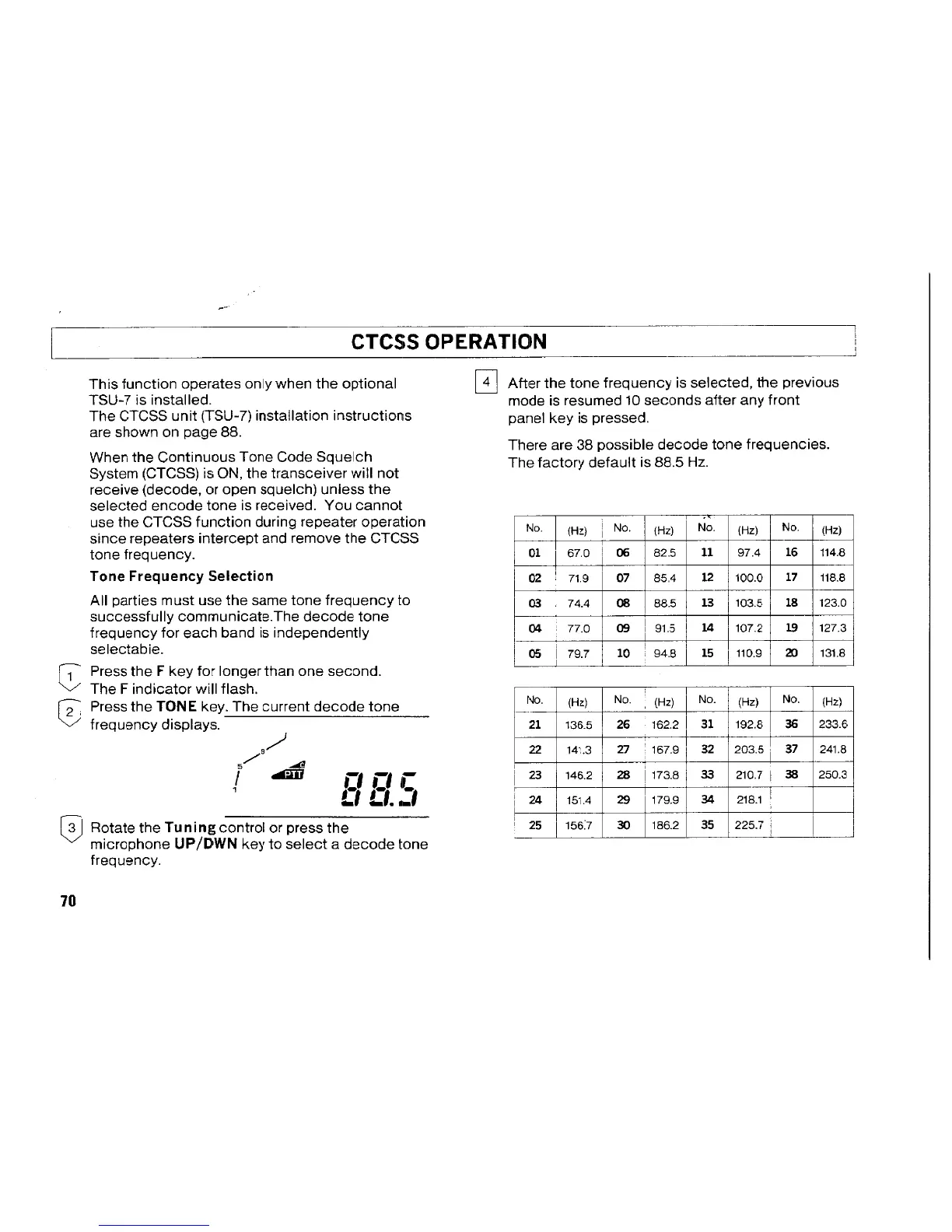 Kenwood TM-742A/E - CTCSS Operation; Tone Frequency Selection