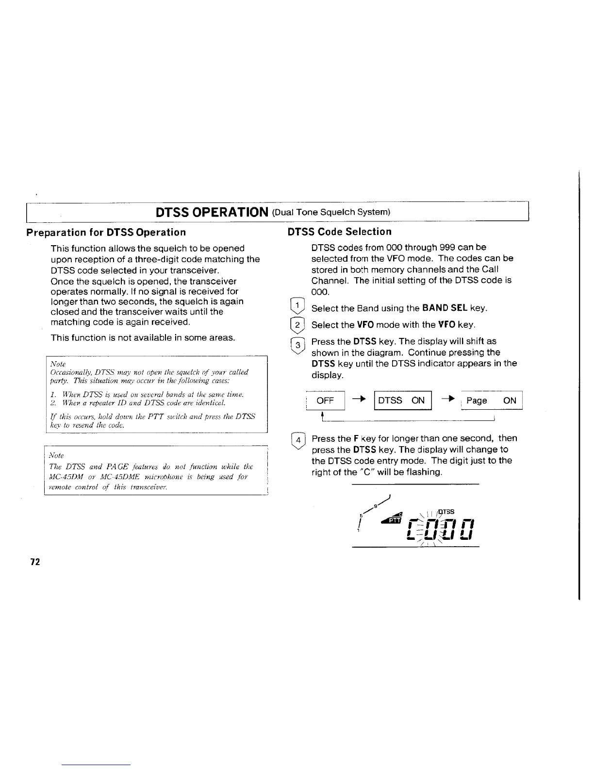 Kenwood TM-742A/E - DTSS OPERATION; Preparation for DTSS Operation; DTSS Code Selection