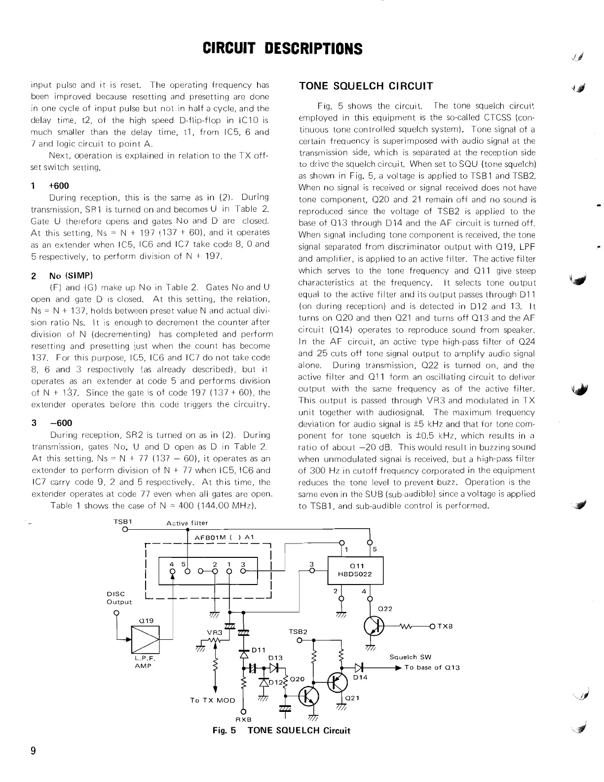 Fig. 5 shows the circuit. The tone squelch circuit